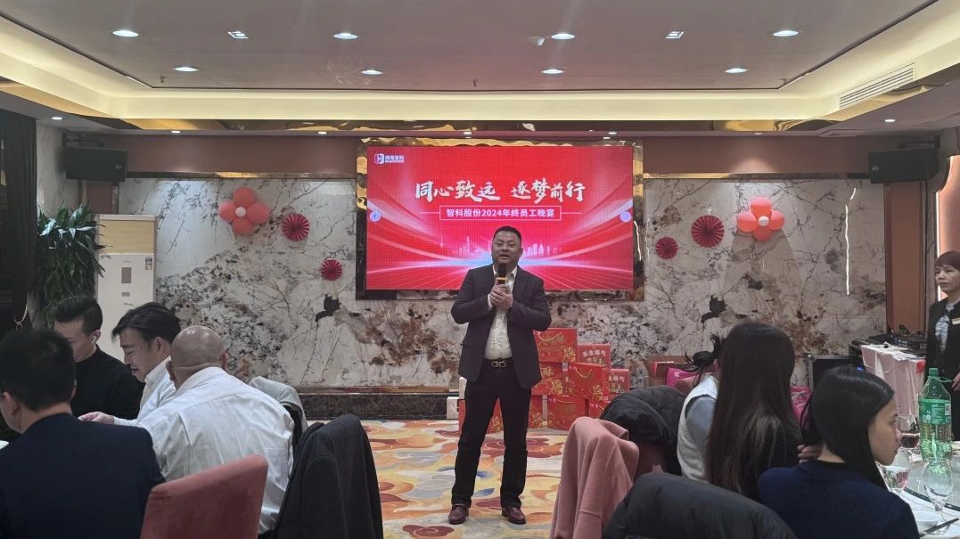 同心致遠,逐夢前行,智科股份全體成員齊聚年終晚宴,共同回顧過去一年的奮斗歷程,分享收獲與喜悅。隨著李總的精彩致辭,晚宴正式開啟。李總在致辭中對全體員工一年來的辛勤付出表示衷心感謝,對公司在過去一年取得的成績給予高度肯定,并對新的一年充滿期待與憧憬,鼓勵大家繼續攜手奮進,創造更加輝煌的明天。