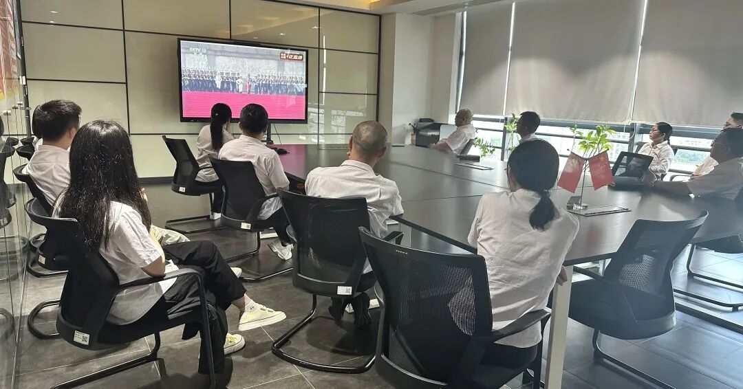 9月3日是中國人民抗日戰爭暨世界反法西斯戰爭勝利 80 周年,為深刻銘記那段浴血奮戰的崢嶸歲月,緬懷為民族獨立犧牲的革命先烈,傳承弘揚“天下興亡、匹夫有責”的偉大抗戰精神,進一步激發全體員工的愛國情懷與奮斗激情,今天上午9點,智科黨支部組織黨員及員工集中觀看閱兵儀式直播。