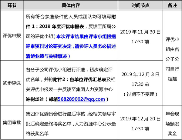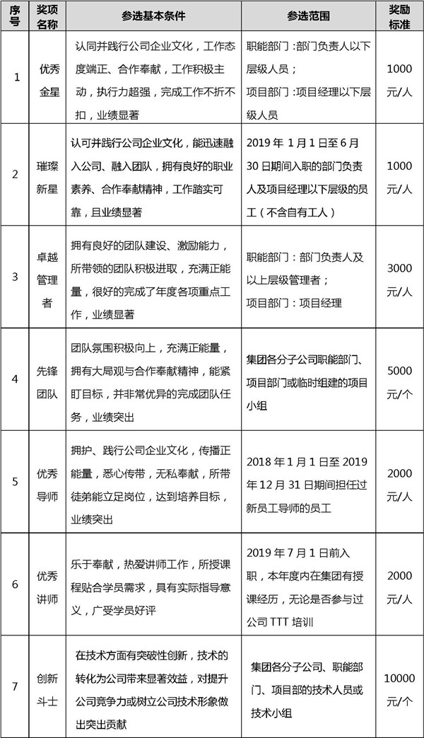備注:獎項 1、3 的參選人員需是 2019 年 1 月 1 日之前入職且連續(xù)工作滿 1 年的員工。