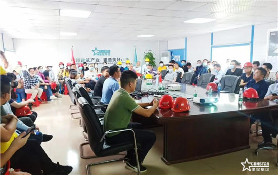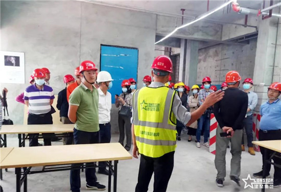在講解員的帶領(lǐng)下,觀摩團(tuán)分組進(jìn)行觀摩。大家先后觀摩安全體驗(yàn)區(qū)、質(zhì)量樣板區(qū)、工藝展示區(qū)、實(shí)用工具展示臺、生產(chǎn)大課堂等,對項(xiàng)目新工藝、新材料、新技術(shù)、信息化管理應(yīng)用有更深入的了解。