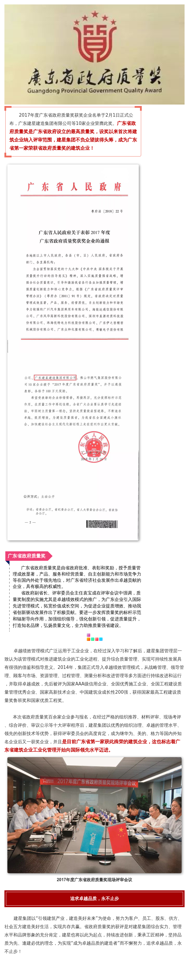 榮譽 | 建星集團率先建筑行業(yè),首獲廣東省政府質量獎