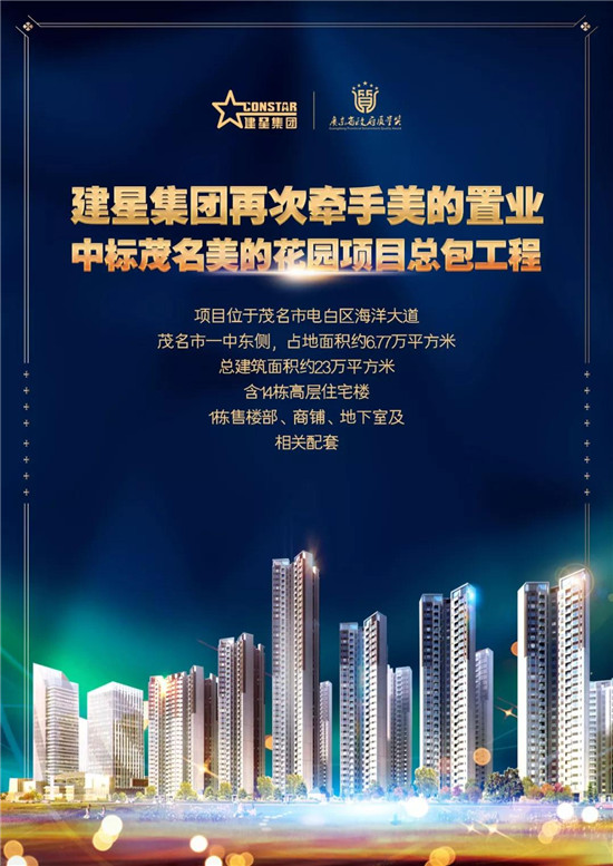 近日,建星集團成功中標茂名美的花園項目一期總包工程。這是繼佛山美的鷺明花園項目之后,建星與美的置業(yè)的再次深入合作。
