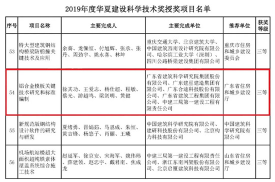 近日,華夏建設(shè)科學(xué)技術(shù)獎勵委員會公布“2019年度華夏建設(shè)科學(xué)技術(shù)獎“獲獎名單,建星集團參與完成的科研項目《鋁合金模板關(guān)鍵技術(shù)研究和標(biāo)準(zhǔn)編制》獲2019年度華夏建設(shè)科學(xué)技術(shù)獎三等獎。