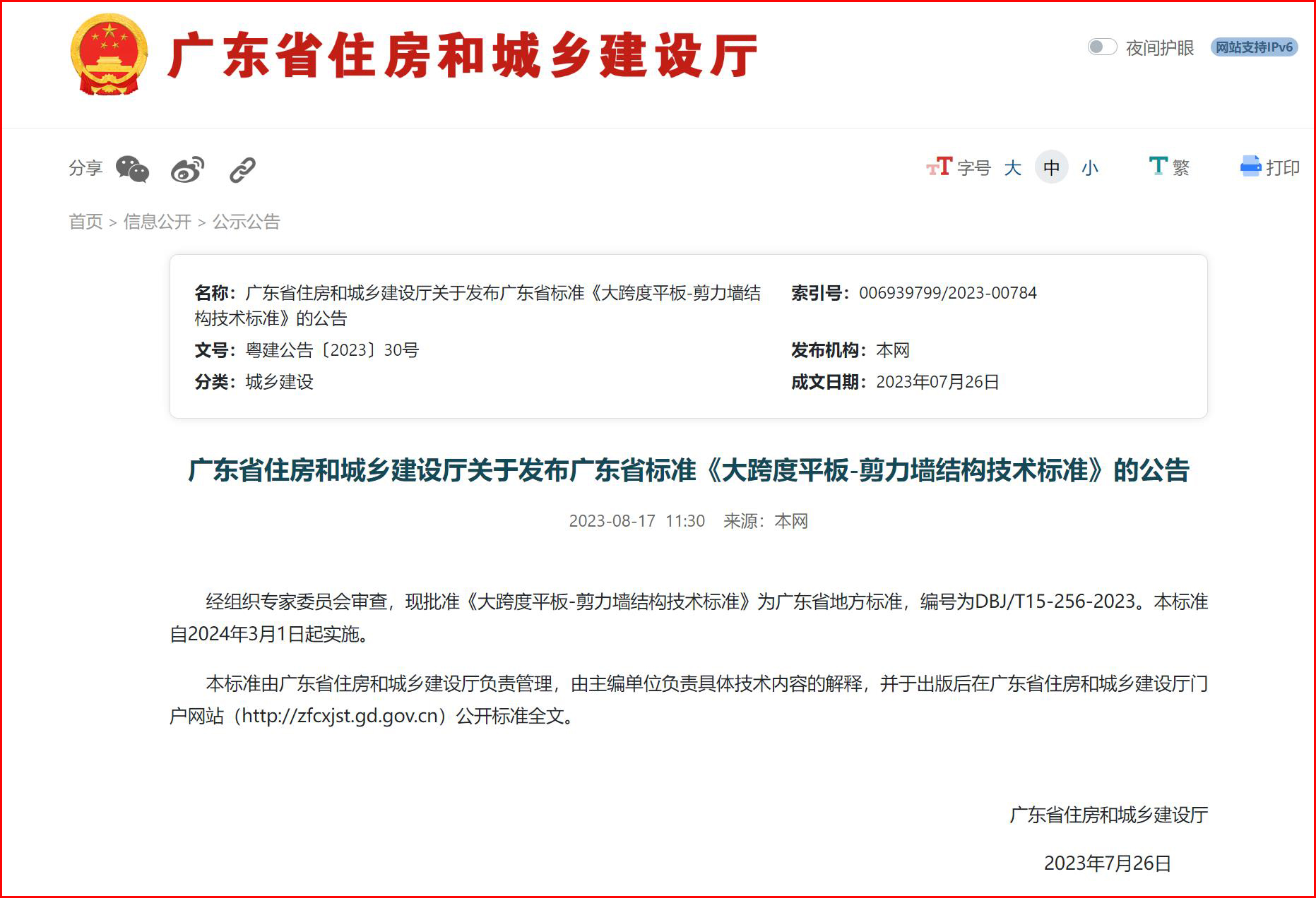 《大跨度平板-剪力墻結構技術標準》于2024年3月1日起正式實施
