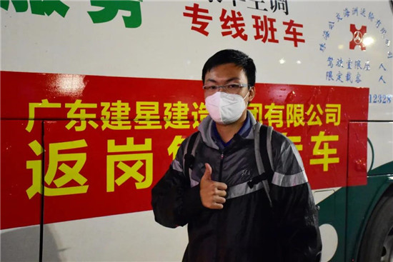 “在家里待了一個(gè)多月,好想回來上班,一直買不到票我都著急死了。沒想到建星不僅安排免費(fèi)的專車把我們安全送到,一路上還有小伙伴幫我們搬行李、送食物,真的好感動(dòng)!給你們點(diǎn)贊!”