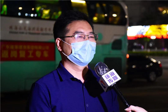 當(dāng)晚,珠海市住建局局長方小勇帶隊(duì)在體育中心集中點(diǎn)等候迎接返崗工人。車輛抵達(dá)后,方局第一時(shí)間了解路上的行車情況、對(duì)務(wù)工人員返崗表示歡迎、感謝他們?yōu)橹楹5某鞘薪ㄔO(shè)做出貢獻(xiàn),并叮囑大家一定要做好防疫措施,保護(hù)自己、保護(hù)身邊人,共克時(shí)艱、迎接春暖花開。